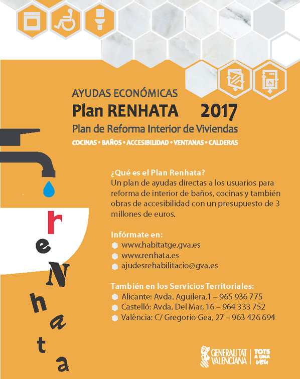 ORDEN 4/2017, de 27 de febrero, de la Conselleria de Vivienda, Obras Públicas y Vertebración del Territorio, por la que se aprueban las bases reguladoras de la concesión de subvenciones para la mejora de las condiciones del interior de las viviendas, en el marco del Plan de reforma interior de vivienda, Plan RENHATA.
