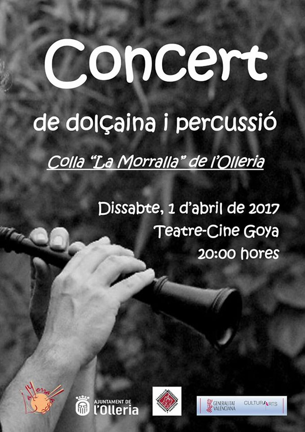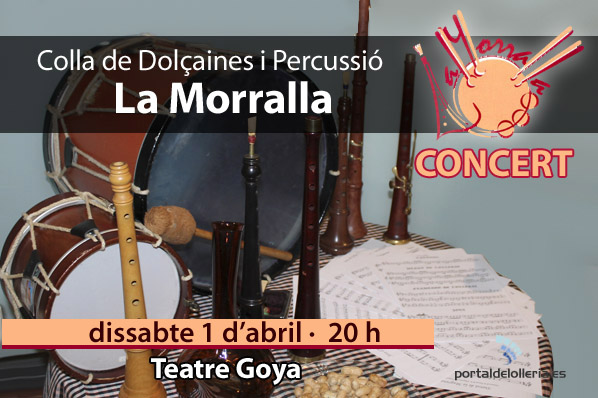 El próximo sábado, 1 de abril, el grupo «Colla de Dolçaines y Percussió La Morralla» ofrecerá un concierto en el Teatro Goya a partir de las 20h. Además de ofrecer un variado repertorio aprovecharan la cita para presentar a su nuevo director. Los asistentes podrán tambien disfrutar de «coca en llanda i mistela».