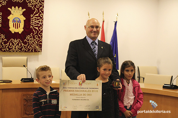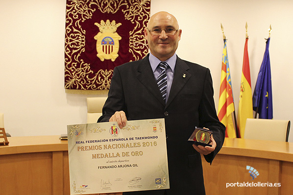 Fernando Arjona Gil, ha recibido esta mañana un merecido homenaje por parte del Ayuntamiento, ante un nutrido grupo de familiares y amigos que no han querido perder la ocasión para acompañar al «maestro» en el reconocimiento de l’Olleria por la consecución de la medalla de oro al Mérito Deportivo otorgada por la Federación Española de Taekwondo.