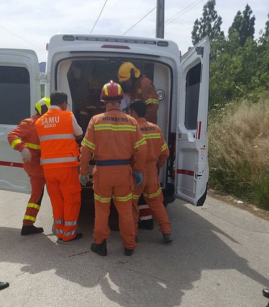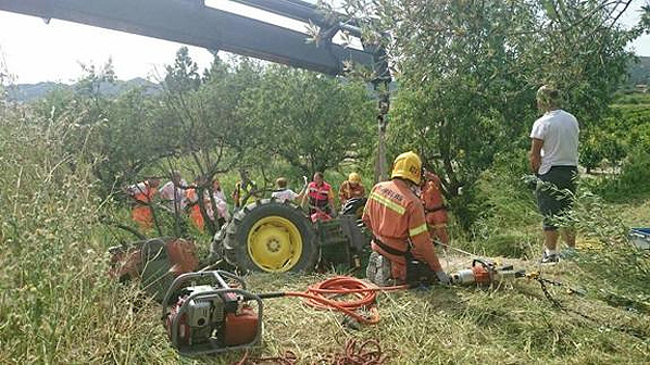 Esta tarde alrededor de las 16h, un amplio despliegue de efectivos entre bomberos y ambulancias acudieron al rescate de una persona atrapada bajo un tractor volcado.