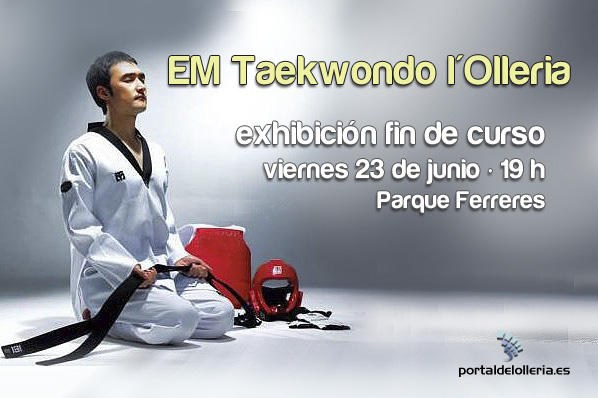 Este viernes, 23 de junio, con motivo de la finalización del curso de la Escuela de Taekwondo de l’Olleria se celebrará una exhibición en el parque Ferreres a partir de las 19 h. Bajo la batuta del director y coordinador del curso, Fernando Arjona, los alumnos al final del evento recogerán los méritos conseguidos durante esta temporada.