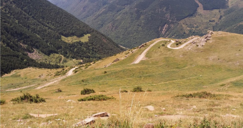 Nada más salir y sin tiempo a saber si las piernas iban a responder, empezaron las subidas, técnicas y larguísimas subidas que más valía no levantar la mirada y fijar la vista no más allá de un par de metros a la rueda delantera para no desmoralizarse, el tiempo era mucho mejor, hacia buen sol y ya no hacia tanto frio, a los cinco minutos de salir ya sobraban todos los manguitos y chubasqueros, fueron 5 kms de subida en los cuales acumulamos los 600 metros positivos y sin ningún descanso ni siquiera un falso llano, al coronar tales subidas cual fue nuestra sorpresa que al preguntar a unos chicos de la zona nos informaron que acabábamos de subir el famoso y temible coll D’Oli, una vez coronado empezaron unos tramos de empedrado muy técnicos hasta el punto de tener que en ocasiones bajarse de la bici, después pasamos por sendas espectaculares hasta llegar a la población de Torre de capdella en el km 15, aquí empezaríamos ya a subir por asfalto y durante 5 kms hasta llegar al primer y único punto de control en la población de Esquí, este sería el último punto de avituallamiento, por lo que decidimos comprar unos bocadillos para poder comer a lo largo del día. Comienza la gran subida, llegaba el momento más duro del día, eran más de 12 kms de subida sin descanso, y 1000 metros positivos por pista y una vegetación que tal y como subíamos esta se iba perdiendo, en el segundo tramo de la subida se apreciaba perfectamente la forma de zic-zac, era interminable, los kms no pasaban, por fin coronamos la cima del TRIADOR a 2100 metros de altitud, con el cuerpo totalmente desencajado, pero con una tremenda alegría al ver al resto de mis compañeros colocando la bandera Valenciana y así poder inmortalizar el gran momento. Allí con aquellas increíbles y maravillosas vistas, decidimos tomar un pequeño descanso y aprovechar para comerse el bocadillo y recuperar fuerzas, yo personalmente me acerque a una de las laderas y disfrutando de aquellos paisajes me tome unos minutos para pensar en todos los momentos especiales que uno siempre tiene y dar gracias por poder estar allí, recordando a toda mi familia y amigos, que sin ellos nada de todo esto sería posible. Siempre que consigo alcanzar metas tan importantes, no puedo dejar de pensar en el peor día de mi vida, pero con constancia, sacrificio y esfuerzo todo es posible.