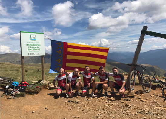 Después de varios años realizando pruebas de Montain Bike “de un día” por diferentes lugares de la geografía Española, para este año era el momento de hacer algo diferente, pensando en alguna prueba por etapas, nuestro compañero Javi Aparicio propuso allá por el mes de enero el realizar esta mítica prueba “Pedals de Foc” en tres etapas, la idea agrado y nos pusimos manos a la obra para organizar el evento, pensamos que la mejor fecha era aprovechar el puente del 15 de agosto. Transmitimos la idea a todos los compañeros y fueron cinco los que decidieron realizar esta nueva y gran aventura,( Juan Luis Sánchez “Presi”, Javi Aparicio, Sergio Boluda “Cabo”, Dani “Davira” a partir de ahora “Danilo” y un servidor “Juanvi Grima”), la aventura prometía mucho, son tres etapas con una media de 72 km y 2.000 mts de desnivel positivo por etapa, para algunos compañeros era la primera experiencia de rodar en bicicleta por los pirineos y como muy bien dicen … los pirineos son diferentes, pero una cosa si tenía bien clara y es que aunque sabía que íbamos a sufrir, el buen ambiente y la diversión estaban asegurados. Por ello y antes de continuar quiero dar las gracias a los cuatro, por el buen ambiente transmitido ya que estos cinco días se han convertido en un recuerdo y una experiencia inolvidable y pienso y deseo que ellos hayan tenido estas mismas sensaciones. “ Hemos sufrido, nos hemos Cansado, pero… Nos hemos reído y hemos disfrutado de aquello que más nos gusta (la bici y la montaña)”, en resumen, me siento muy orgulloso de tener y poder rodar con compañeros como estos.