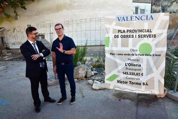 En l’Olleria, el diputado de Cooperación Municipal ha visitado la zona verde de la Font Vella, rehabilitada el pasado año gracias a los Planes Provinciales de Obras y Servicios (PPOS). “Hemos construido un parque y reurbanizado toda la zona, que estaba muy deteriorada, con casas abandonadas, desniveles y zonas inundadas”, ha explicado el alcalde de la localidad, Julià Engo.