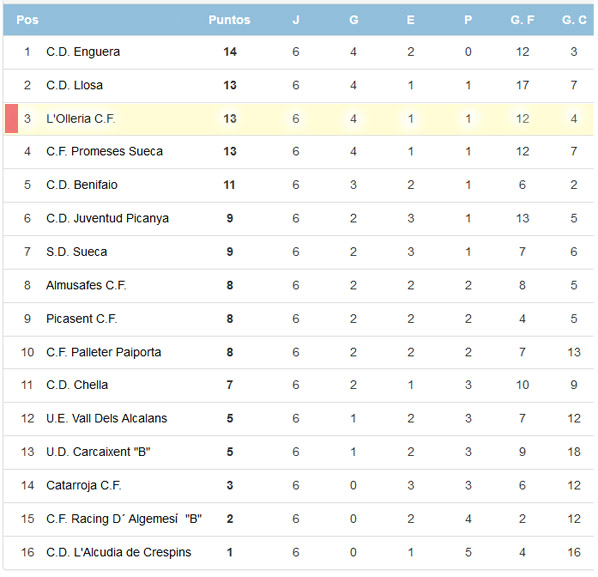 L’Olleria CF, consiguió este sábado otros tres valiosos punto al vencer al C.F. Racing D´ Algemesí-Mecavenida «B» por 1 a 2. El encuentro se desarrolló con una primera parte donde los ollerienses dominaron infructuosamente el juego, donde los porteros permanecieron inéditos hasta después del descanso. La segunda parte el dominio se tradujo en dos goles casi seguidos, Pedro Pérez (57′) y Rafa Gil 59′ encarrilaban el triunfo que casi se vé amenazado al final del encuentro, ya que los locales que habían perdido un jugador (83′), consiguieron acortar distancias en el minuto 88. Los últimos minutos del encuentro se convirtieron en un asedio desesperado a la meta de Bernat. El pitido final dejaba al equipo de Pablo Fortes en el grupo de cabeza, a un punto del lider y con un triple empate por la segunda plaza.