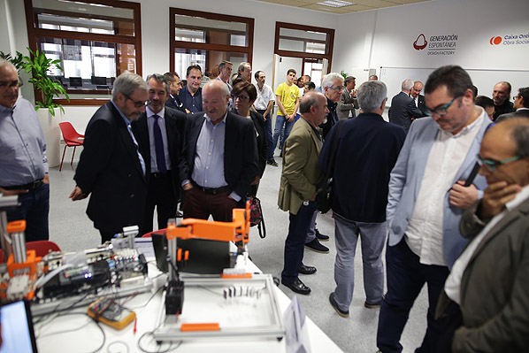El subdirector de Emprendimiento, Empleo y Generación Espontánea, del campus, Don Jaime Masía Vañó presentó a la comitiva encabezada por el rector de la UPV, Don  Francisco J. Mora y el presidente de Caixa Ontinyent, Don Antonio Carbonell, el taller y los trabajos que ya se están desarrollando tanto por alumnos y alumnas, como de los diferentes grupos de Generación Espontánea.