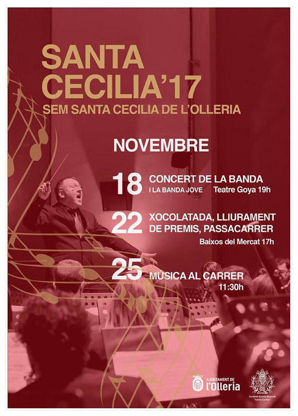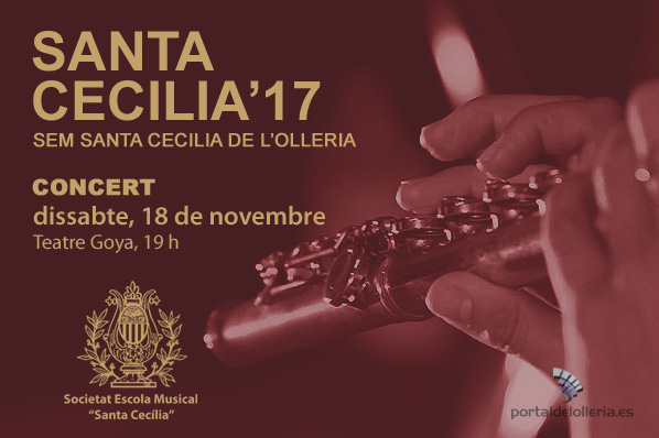La SEM Sta Cecília de l’Olleria celebra la festividad de Sta. Cecília con varios actos, que tendrán su punto de partida el próximo sábado, 18 de noviembre, con el Concierto de la Banda y la «Banda Jove» en el Teatro Goya, a partir de las 19:00 h.