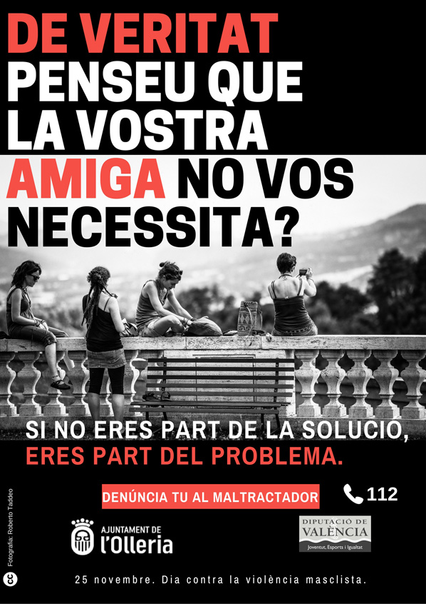 «Con estas actividades lo que queremos es alertar sobre lo que está pasando. En lo que llevamos de 2017, 44 mujeres han sido asesinadas, es necesario que reflexionemos y sobre todo que acabamos de una vez por todas con esta lacra social «, afirma Gloria Micó, Concejala de Bienestar Social del Ayuntamiento de l’Olleria.