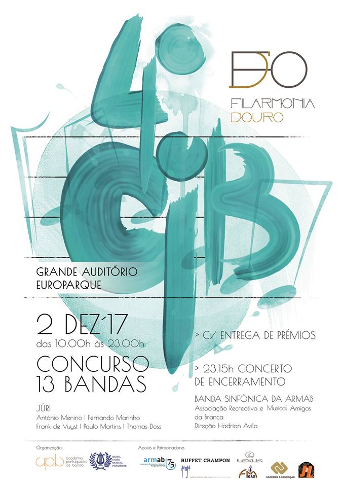 El jurado de esta cuarta edición del CIB Filarmonía D’Oro está constituido por cinco personalidades de reconocido mérito artístico: Paulo Martins (Presidente del Jurado), Thomas Doss (Austria), Frank de Vuyst (Bélgica), António Menino y Fernando Marinho. El CIB Filarmonía D’Oro será organizado por la Academia Portuguesa de Banda (APB) en asociación con las empresas Cardoso & Conceição y Buffet Crampon.Con el apoyo de José Lourenço Producci