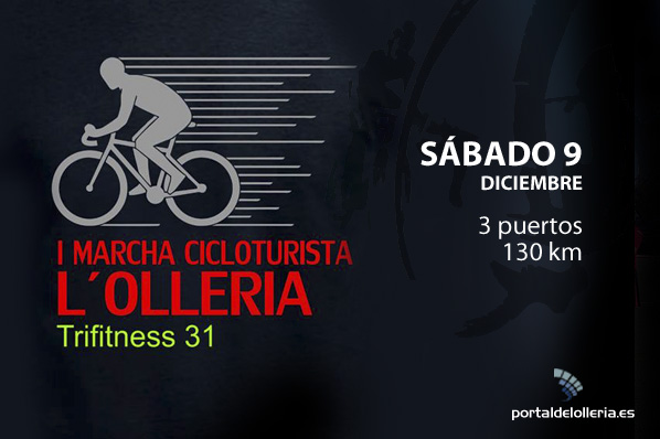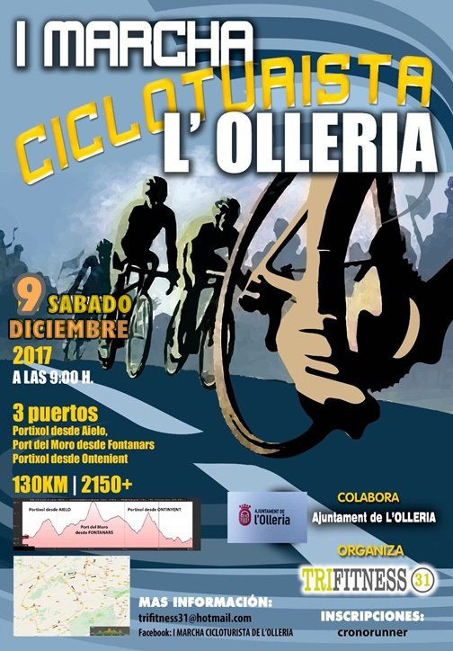 I MARCHA CICLOTURISTA DE L’OLLERIA tendrá lugar el Sabado 9 de Diciembre de 2017 a las 9:00h.