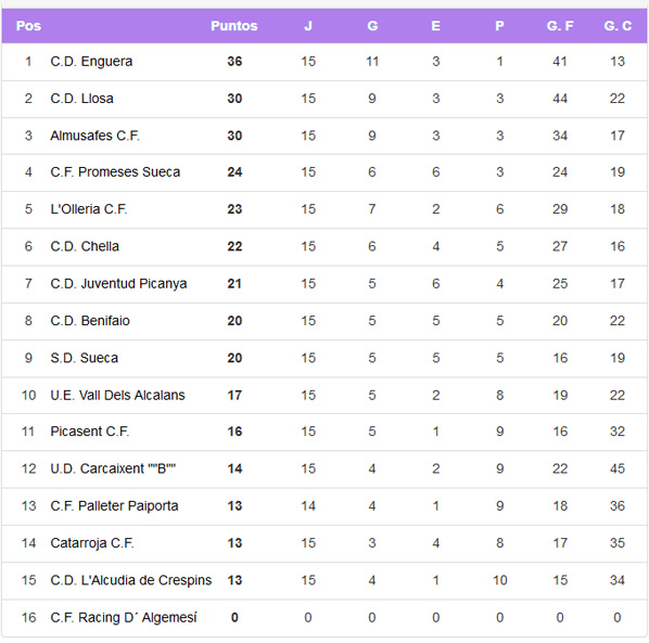 L’Olleria CF continua amb la seua millor versió en aquest 2018, al bon joc exhibit en l’anterior jornada davant del líder Enguera, la seva visita al segon classificat va ser una continuïtat de treball i entrega, aquesta vegada amb premi, els tres punts en disputa. La trobada que va començar amb els de la Llosa a «tromba», es va anar diluint als 20 minuts on els ollerians van aconseguir imposar el seu ritme ensenyorint-se de la pilota. Ordre i mentalitat guanyadora van tenir el seu fruit a partir del minut 60 que va ser quan van començar a arribar els gols. Jonathan Colomer (60 ‘), Pedro Pérez (66’) i Alberto Cambra (75 ‘) aconseguien encarrilar amb trets des de l’àrea gran en una trobada de molta exigència donada la qualitat del rival.