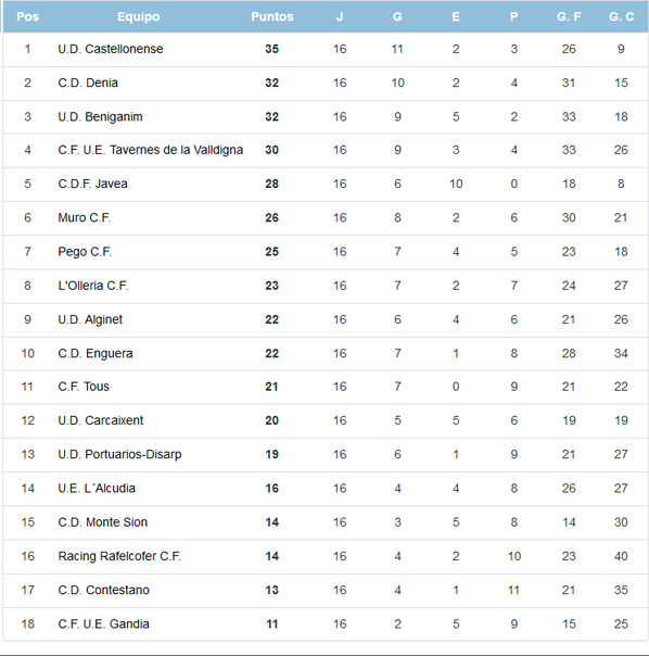 A una jornada de finalizar la primera vuelta, l’Olleria CF circula por mitad de la tabla, y con una capacidad de juego que de momento invita a despreocuparse por la permanencia. La próxima jornada, la número 17, l’Olleria visita al CD Dénia, segundo en la clasificación a 3 puntos del líder. Otro encuentro complicado, (como los 16 anteriores) donde l’Olleria puede sacar algo positivo. La cita, el sábado 22 a las 17 h