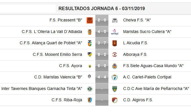 A falta d’un partit que pot modificar el cap de la taula, (el qual disputa CDC Ave Maria de Peñarrocha), CFS l’Olleria ocupa el liderat del seu grup. Per a això va haver de derrotar un rival molt complicat, com va ser el Maristes Sucro Cullera. Prova d’això va ser que encara perdent 4-0 van disputar amb la màxima intensitat fins a l’últim segon de la trobada a la recerca d’un gol. Per la seva banda els ollerians segueixen demostrant un excel·lent nivell de joc i molta facilitat per superar la pressió rival.