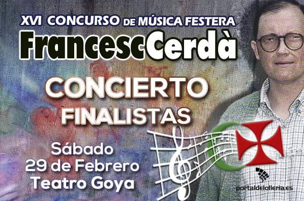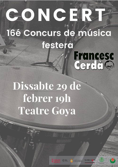 El concert de presentació de les obres finalistes d’aquesta 16 edició del Concurs Francesc Cerdà serà el 29 de febrer a les 19 hores al Teatre Goya de l’Olleria.