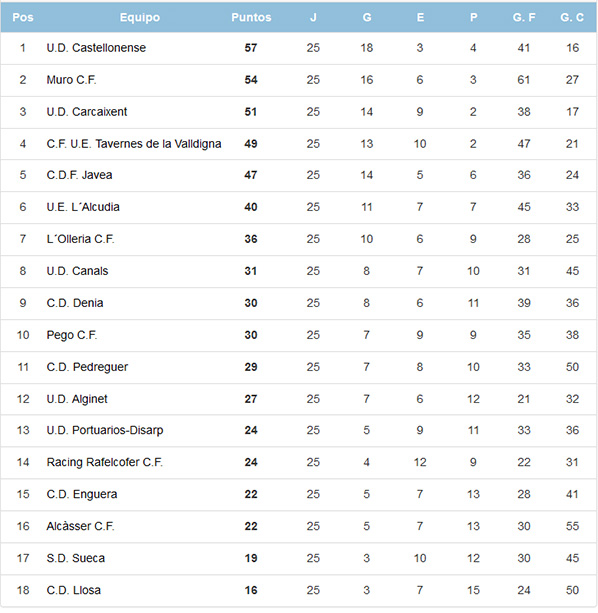 La próxima jornada l’Olleria que se mantiene en la 7ª plaza, visitará al CD Enguera, que ocupa el 15º puestos, y que esta semana acaba de derrotar a otro de los aspirantes al ascenso, el CD Jávea. Victoria que le ha permitido abandonar los puestos de descenso. Es decir l’Olleria visitará a un equipo que acaba de rearmarse moralmente y sigue necesitado de puntos. Encuentro complicado para los visitantes.
