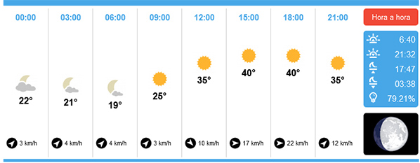 Segons Aemet, està previst que l’alerta comenci a les 12:00 hores i concloguin sobre les 20:00 hores. Aquest tipus d’alerta també implica un alt risc d’incendi forestal, pel que és possible que s’elevi el nivell d’alerta que ara mateix està en groc.