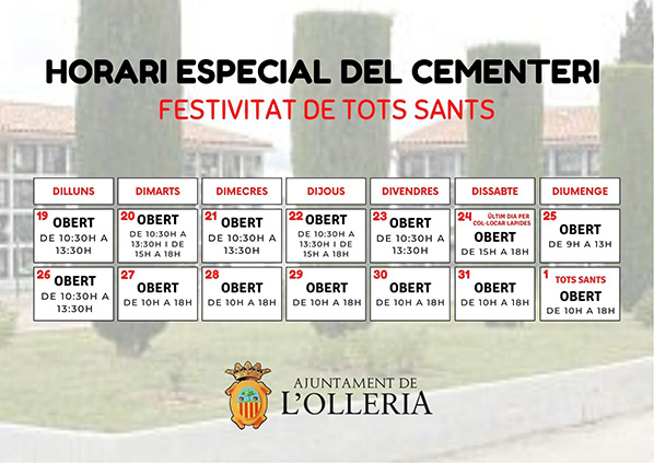 Horari especial al Cementeri Municipal per motiu de la festivitat de Tots Sants