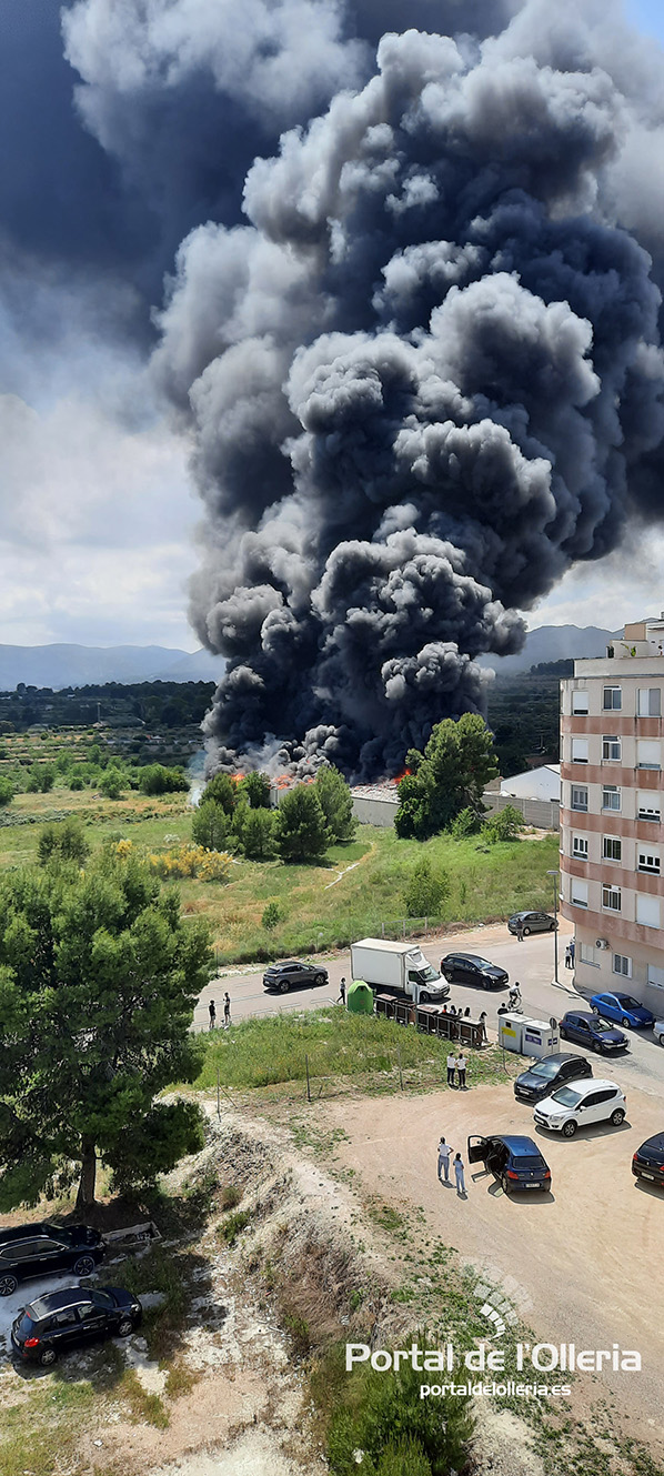 Cap a les tres de la tarda, s’ha declarat un incendi en una nau-magatzem darrere de la benzinera de la part alta de l’Olleria. Concretament, tal com informen des del Consorci de Bombers, el foc, que encara està actiu i trigarà a ser controlat per la quantitat de materials emmagatzemats. Les principals tasques d’extinció se centren en salvar altres naus limitrofes a l’afectada que probablement ja es dóna per perduda després dels ensorraments parcials de la coberta que van sucumbint a les flames.