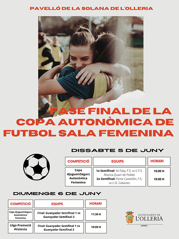 La fase final de la Copa se celebrarà íntegrament al Pavelló de L’Olleria, sent les trobades de semifinals el dissabte 5 de juny i la gran final el diumenge dia 6.