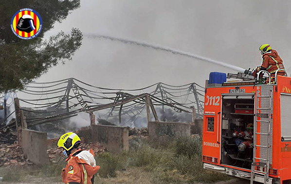 Tercera jornada para sofocar completamente el incendio iniciado el martes en una nave-almacén de la parte alta de l’Olleria. Desde entonces las dotaciones de bomberos de suceden una tras otra. Con el perimetro controlado desde el primer día, el hecho es que la cantidad de material acumulado en la nave, básicamente ropa usada y calzado aporta la mayor complicación en las tareas de extinción. Entre otras cosas, se intenta que se consuma la mayor parte con las llamas, para evitar una gran nube de vapor si se decidiese sofocarlo directamente, lo que podría complicar todo el dispositivo. Los efectivos desplazados proceden de Ontinyent, Xàtiva, Gandía, Alzira, Torrent y Paterna.