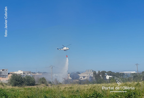Esta tarde se ha declarado un incendio en el barranco del Grau un poco más abajo del «Matadero». El incendio ha sido básicamente de matorral y vegetación, pero próximo a un pequeño núcleo de empresas y que ha movilizado un total de 5 medios aéreos, 2 unidades de bomberos forestales, 2 autobombas, un agente ambiental y una unidad de prevención. En la tareas también participaban tres brigadas de la Diputación de Valencia.