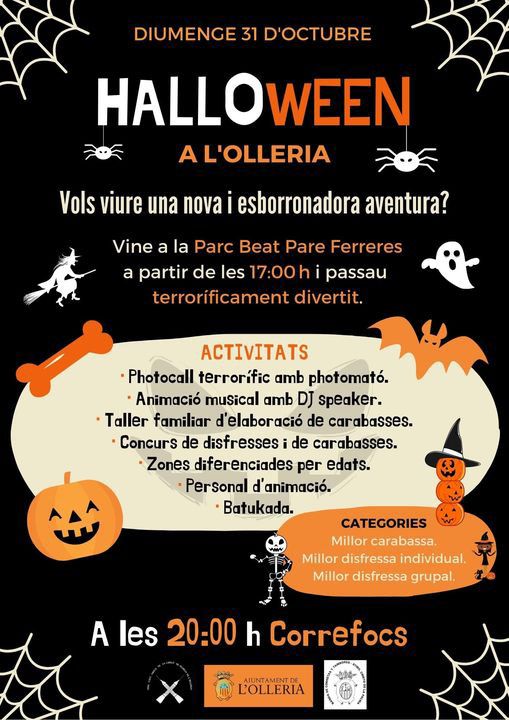 Vine al Parc Beat Pare Ferreres el diumenge 31 d’octubre a partir de les 17:00 h i passau terroríficament divertit amb les activitats que hem preparat especialment per a tu.