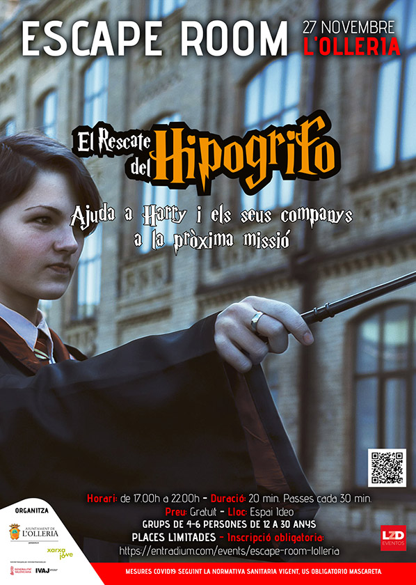 La Regidoria de Joventut de l’Ajuntament de L’Olleria ha organitzat un Escape Room de Harry Potter «El Rescate del Hipogrifo» per al dissabte 27 de novembre.