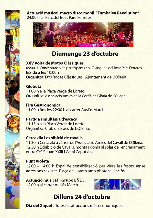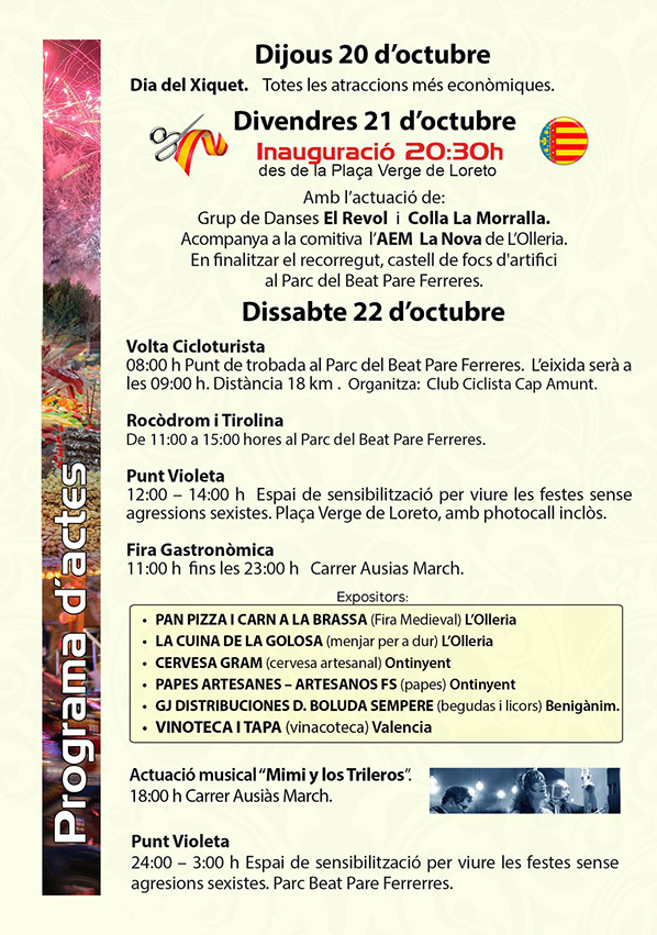 : Inicio » Cultura y Fiestas, Portada » Fira de L’Olleria 2022 (Programación)