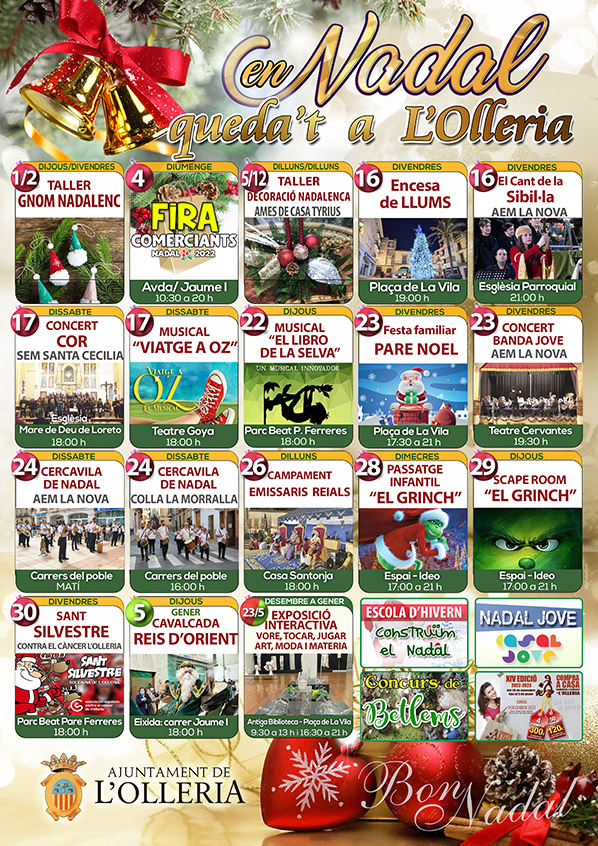 Las siguientes actividades programas por el Ayuntamiento, serán el día 22, con el musical «El libro de la selva», el viernes 23, la fiesta del «Pare Noel» en la plaza de La Vila, y el sábado (nochebuena), los pasacalles de AEM La Nova (mañana), y Colla La Morralla (tarde), amenizaran uno de los días emblemáticos de estas fiestas.