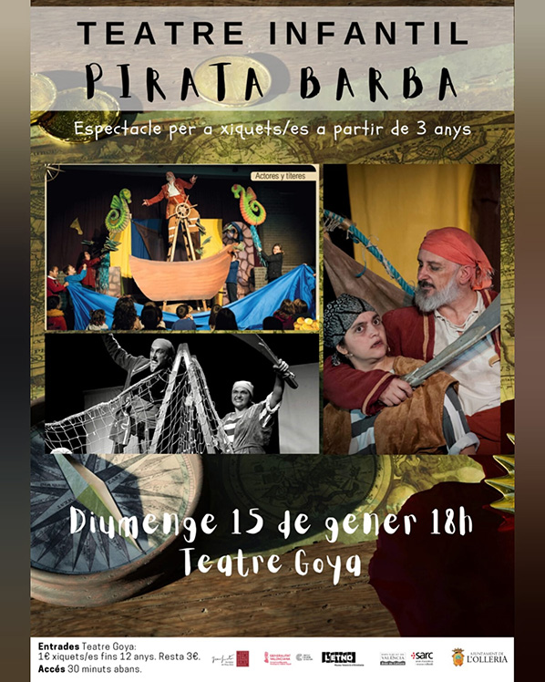 Este fin de semana el Teatro Goya será escenario de la obra de teatro infantil «El Pirata Barba». La función será el domingo 15, a las 18 h. Espectáculo recomendado para mayores de 3 años.