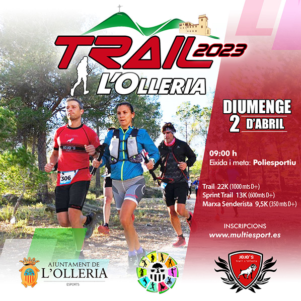 L’Olleria Trail 2023, organizado conjuntamente por la concejalía de Deportes del Ayuntamiento de L’Olleria y el Club Deportivo L’Olleria Jojo’s Trail Mountain, tendrá lugar el domingo 2 de abril.