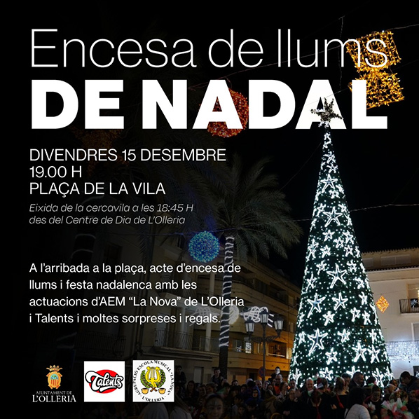 Aquest divendres, a les 19h, la Plaça de la Vila, serà escenari de l’encesa de les llums de Nadal. La cercavila eixirà des del Centre Dia cap a la plaça, on es podrà assistir a més de l’encesa, a les actuacions d’AEM La Nova i el grup de ball Talents