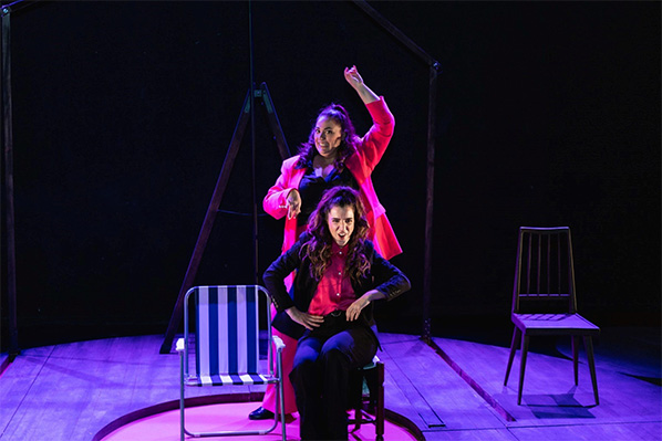 Para la representación, Laura Valero y Rocío Ladrón de Guevara suben al escenario sobre el que una curiosa escenografía creada por Luis Crespo funciona casi como un personaje más. Representa la casa que se va construyendo, que por momentos se rompe, que siempre acoge y que es versátil, capaz de transformarse, como las personas mientras maduran.