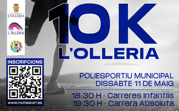 Torna la 10ª edició de la 10K L’Olleria. El dissabte, 11 de maig, se celebrarà la carrera popular de L’Olleria en dos torns, les carreres infantils a les 18:30 hores i la absoluta a les 19:30 hores al poliesportiu municipal.