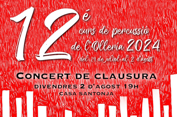 Dotze anys després el Curs de Percussió segueix en marxa més viu que mai i amb un concert de cloenda on l’alumnat i els professors es junten per donar forma a una setmana de noves experiències musicals.