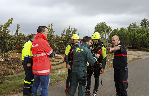 El president de la institució provincial, Vicent Mompó, acompanyat pel president del CPBV i diputat de Medi Ambient, Avelino Mascarell, ha volgut conéixer de primera mà el dispositiu especial activat pels Bombers de Diputació, presenciant un dels rescats de l’equip GERA del Consorci (Grup Especial de Rescat a Altura) en l’Alcudia, i ha volgut fer “una crida perquè la ciutadania evite qualsevol desplaçament que no siga indispensable, perquè la situació és complicada, tant als carrers dels pobles més afectats, com en les carreteres de la xarxa provincial”.