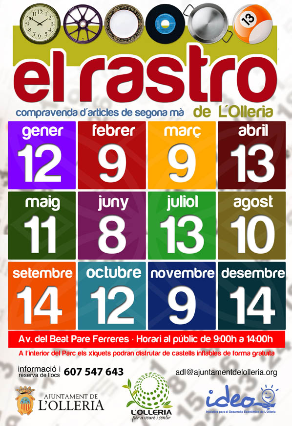 El próximo domingo, se celebra el Rastro de febrero. En la Av. Pare Ferreres, de 9 a 14 horas. Interesados, en disponer de espacio para vender pueden dirigirse a la oficina del ADL de Ajuntament.