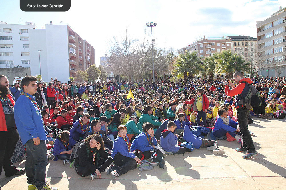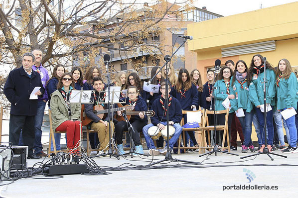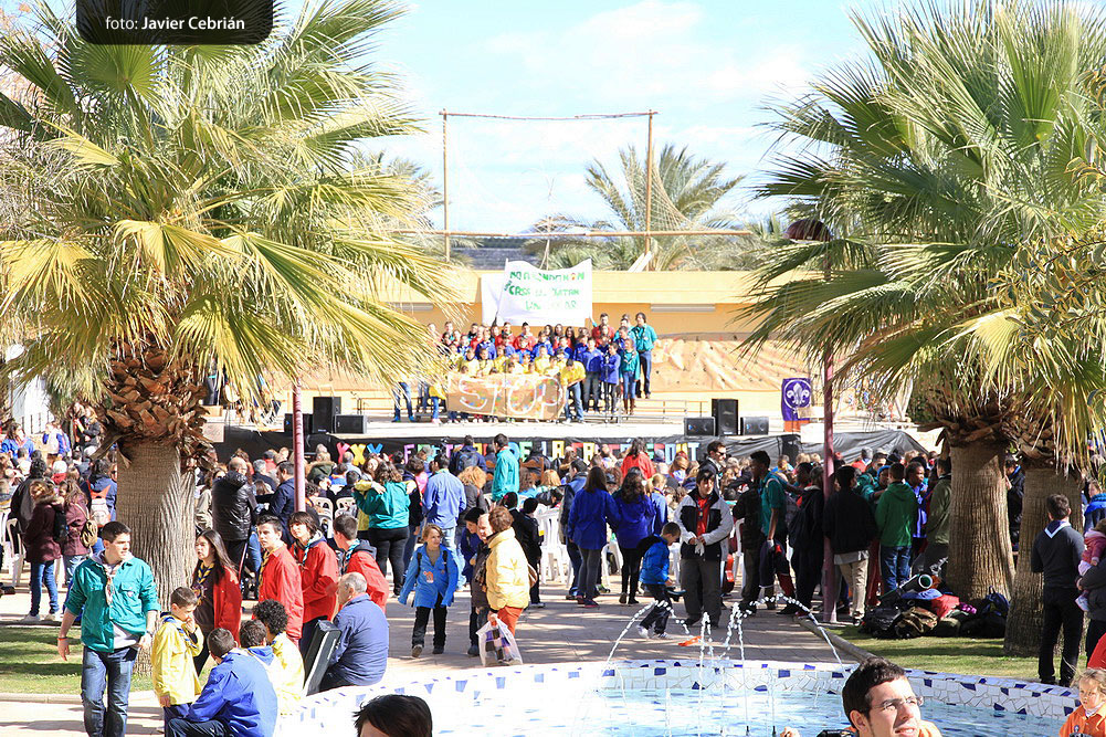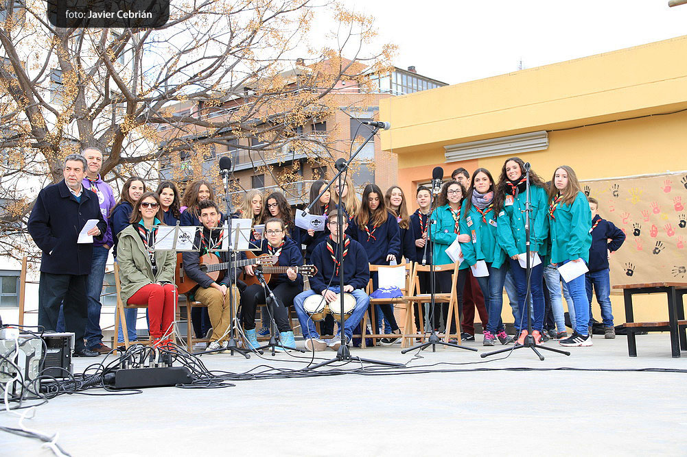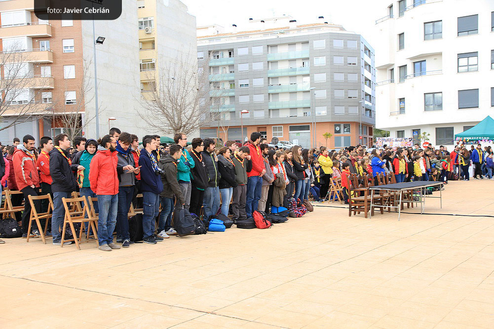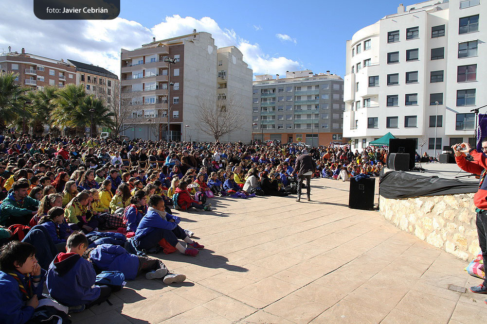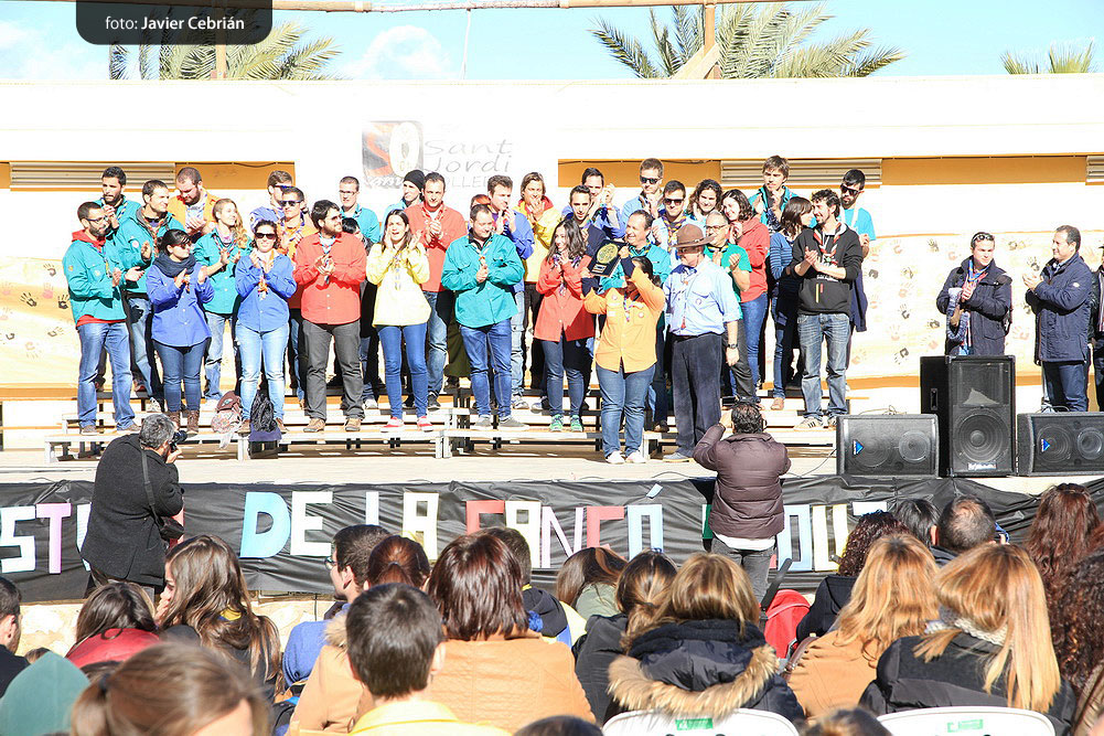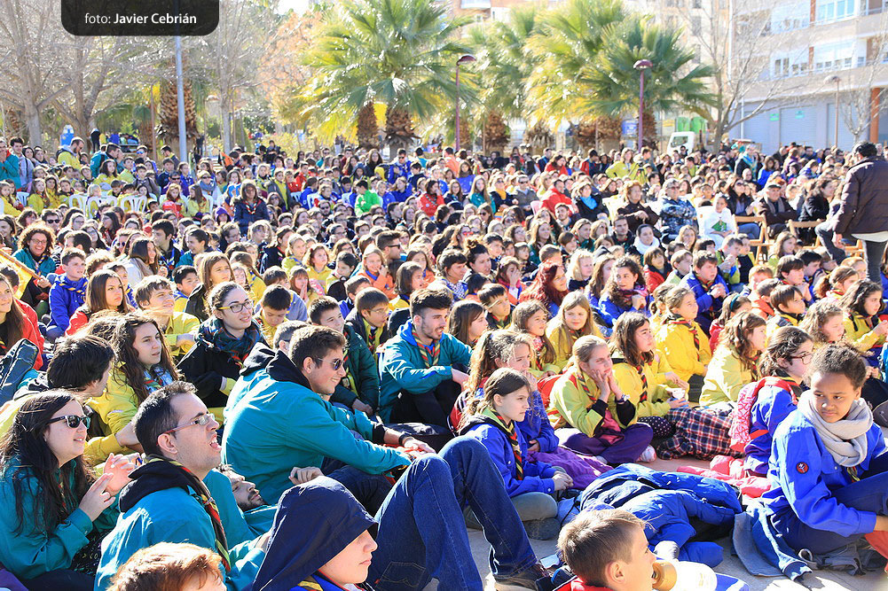 Estos fueron los acordes en los que cerraron el Grupo Scout Sant Jordi el XXX Festival de la Canción Scout celebrado en el Parque Beat Ferreres de l’Olleria, el pasado domingo 22 de febrero. Más de 2500 scouts venidos de todos los rincones de la provincia de Valencia y los que se quedaron en casa podían seguir el festival por el canal de Internet You Tube, gozaron este domingo de una de sus actividades más importantes del año a nivel asociativo, fueron 26 canciones llenas de sentimientos, escultismo, solidaridad, naturaleza… que hicieron que nuestro pueblo se llenara de notas musicales, un sin fin de notas de guitarra, ritmos de los bongós, voces celestiales de niños y niñas que consiguieron con sus canciones que las nubes y el frío de la mañana diera paso al flamante sol, un sol que nos acompañó buena parte de la mañana y que no se quiso perder ninguna de las actuaciones.