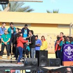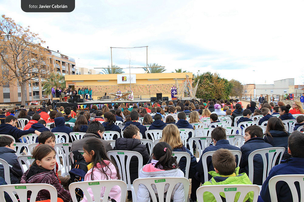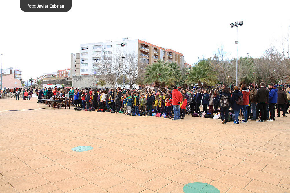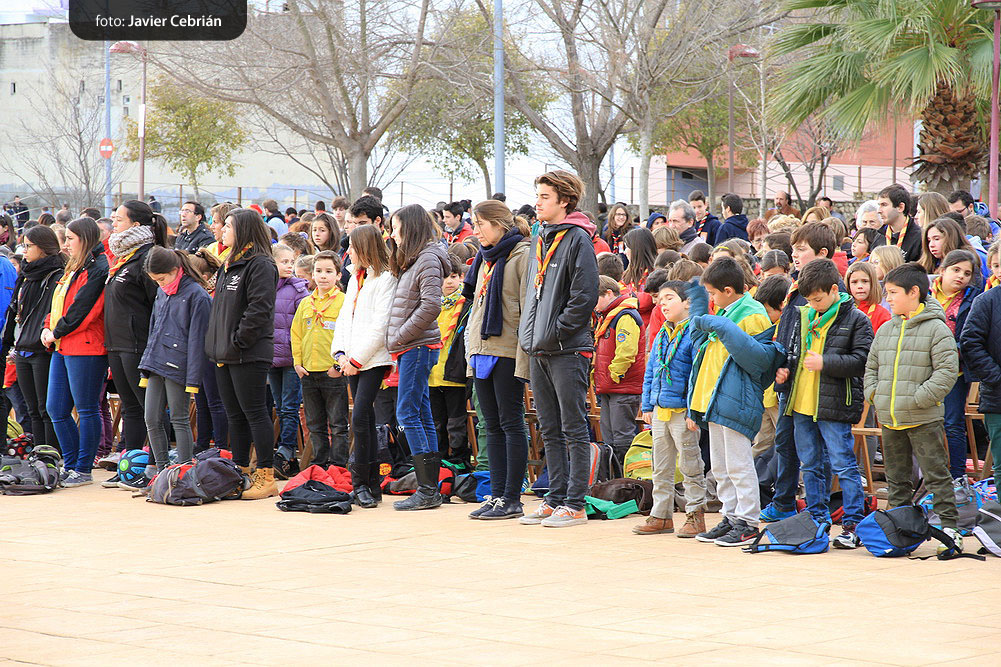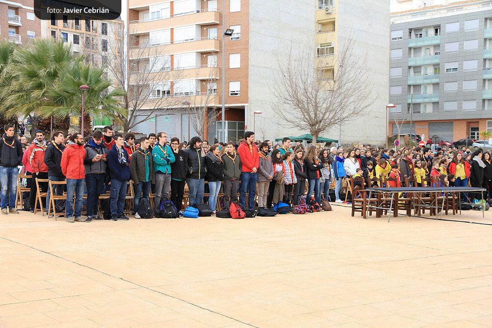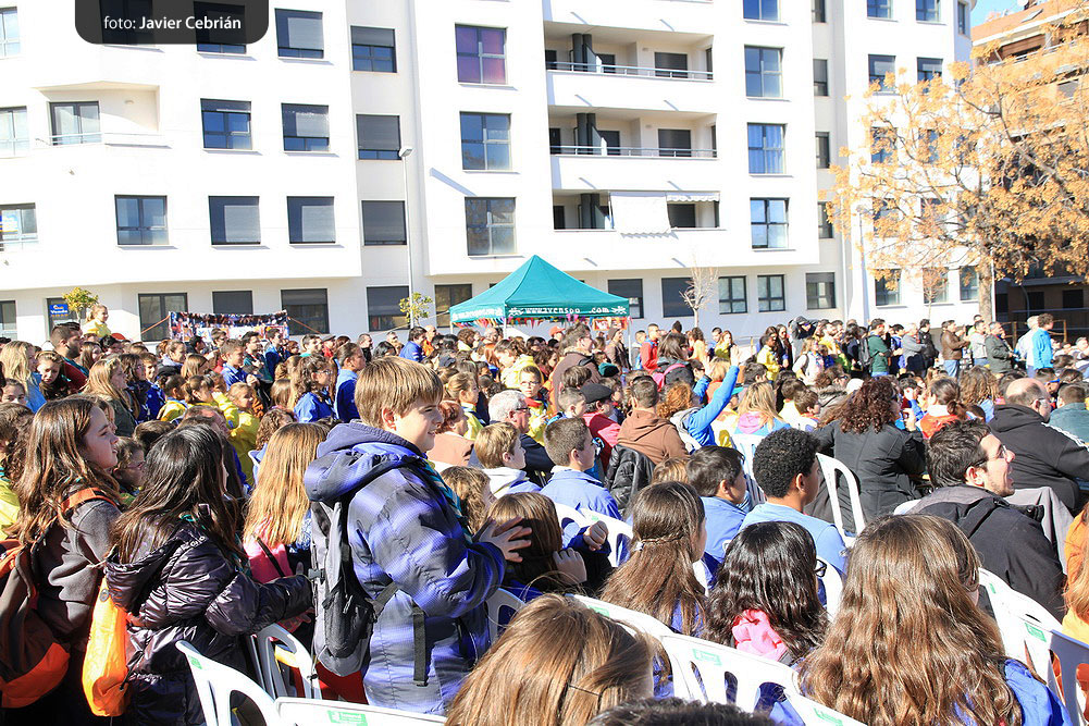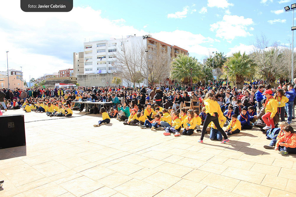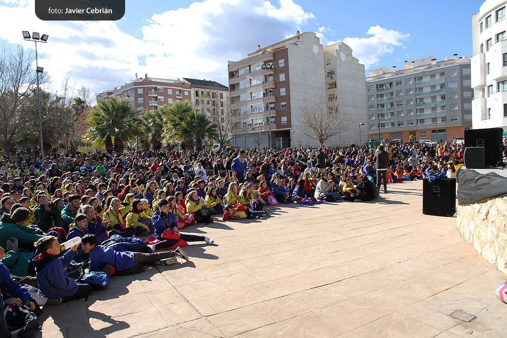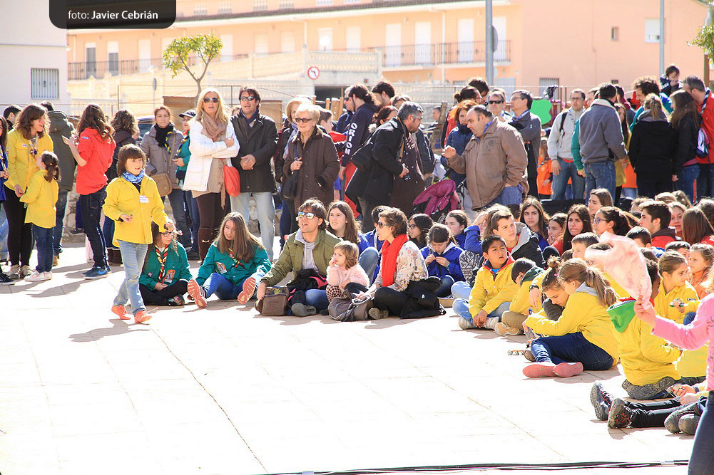 Estos fueron los acordes en los que cerraron el Grupo Scout Sant Jordi el XXX Festival de la Canción Scout celebrado en el Parque Beat Ferreres de l’Olleria, el pasado domingo 22 de febrero. Más de 2500 scouts venidos de todos los rincones de la provincia de Valencia y los que se quedaron en casa podían seguir el festival por el canal de Internet You Tube, gozaron este domingo de una de sus actividades más importantes del año a nivel asociativo, fueron 26 canciones llenas de sentimientos, escultismo, solidaridad, naturaleza… que hicieron que nuestro pueblo se llenara de notas musicales, un sin fin de notas de guitarra, ritmos de los bongós, voces celestiales de niños y niñas que consiguieron con sus canciones que las nubes y el frío de la mañana diera paso al flamante sol, un sol que nos acompañó buena parte de la mañana y que no se quiso perder ninguna de las actuaciones.