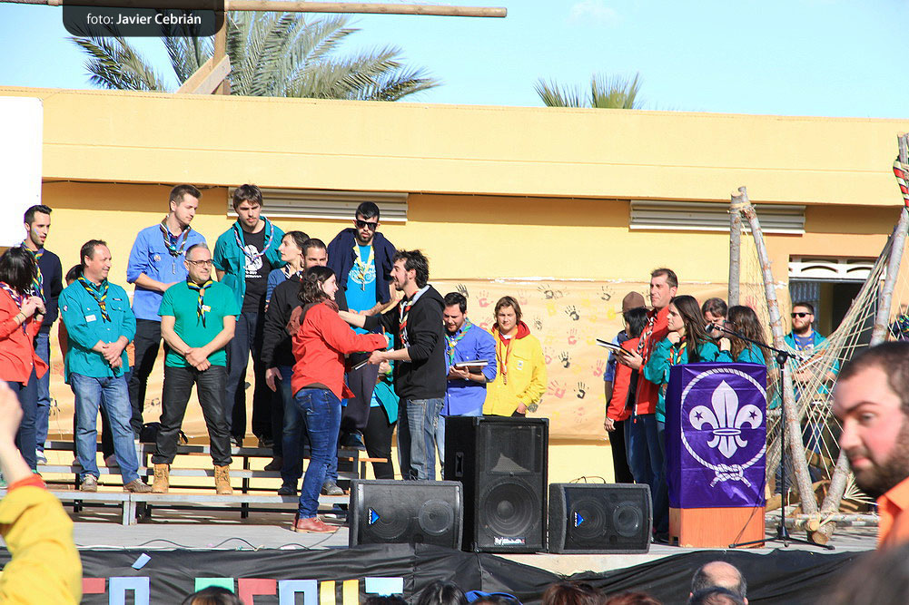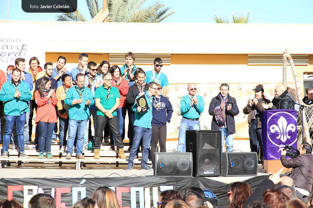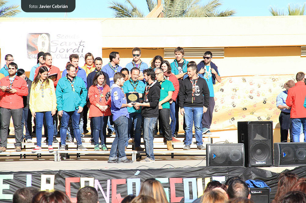 Después de comer, todos los grupos se concentraron delante del escenario para hacer el acto de clausura del festival y la entrega de recuerdos y premios, en el acto de clausura, participo el alcalde de l’Olleria D. José Vidal Oltra y el vicepresidente del Movimiento Scout de Valencia Adrián Colilla, agradecieron la participación de todos y dieron la enhorabuena al Grupo Scout Sant Jordi de l’Olleria por la magnífica organización, después de los parlamentos y de haber llamado a todos los jefes de grupo al escenario se procedió a dar los premios, la encagada de la presentación de los premiados fue la presidenta del jurado Merce Mellado, que representaba al MEV, los premios fueron los siguientes:
