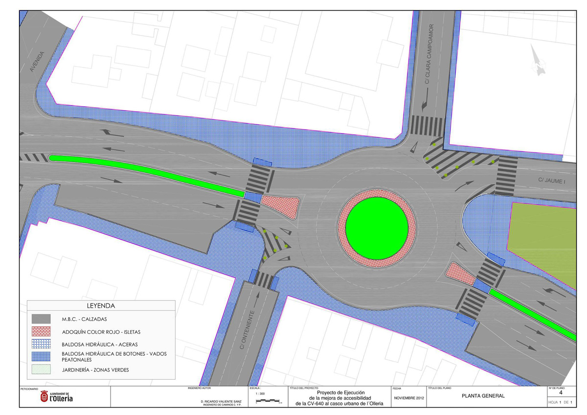 El proyecto contempla la construcción de una rotonda en la intersección de la Avenida de la Diputación con las calles Ontinyent, Clara Campoamor y Jaume I, así como su señalización, ramales de conexión y elementos de jardinería.