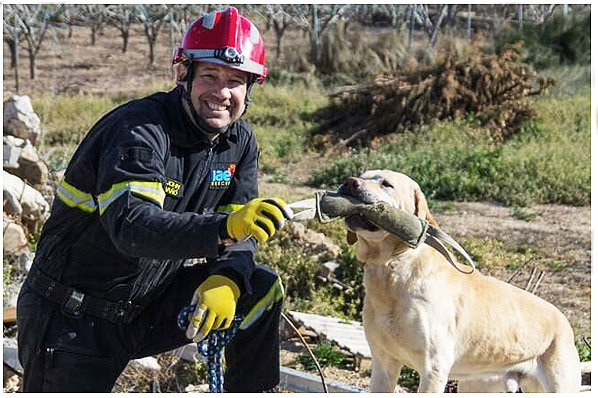 John Vaño Terol, comercial de una empresa de L’Olleria, de 41 años de edad, es voluntario de esta asociación dedicada a la ayuda humanitaria, búsqueda y rescate y terapia con perros desde hace varios años.
