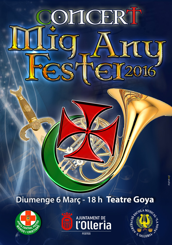 El domingo  a las 18:00 h Concierto de Música Festera por parte de la AEM La Nova de l’Olleria.  bajo la batuta de Miguel A. Sarrió Nadal, acto que se aprovechará para la entrega de los diferentes premios festeros tanto de los actos del año anterior como de los concursos de este Mig Any Fester.