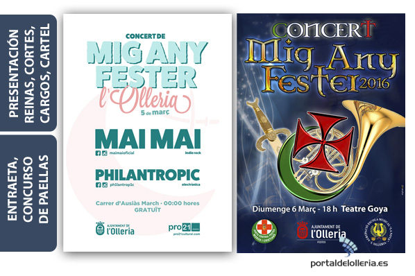 El próximo viernes, 4 de marzo, comienzan los actos centrales del «Mig Any Fester»,  concretamente a las 22:30 horas en el Teatro Goya, con la elección de las Reinas, la presentación de las Cortes de Honor, Cargos Festeros, y la presentación del Cartel anunciador de las «Festas 2016».