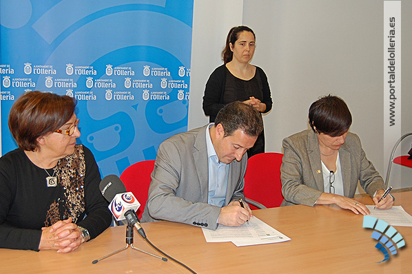 La firma del Convenio también contó con la presencia de la concejala de Bienestar Social, Gema Borrás y de representantes del colectivo de personas sordas de L’Olleria.