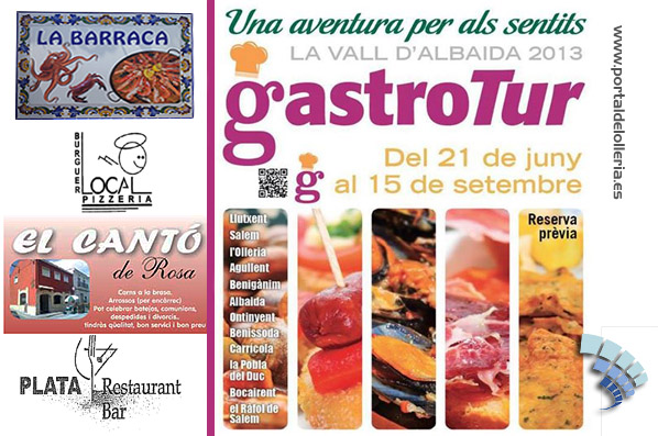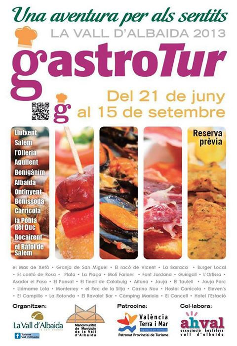 Con el título ‘Una aventura para los sentidos’ el Departamento de Turismo de la Mancomunidad de Municipios de la Vall d’Albaida, ha organizado una amplia campaña que aúna la gastronomía, el turismo y actividades complementarias, con la colaboración de los ayuntamientos de la comarca y la Asociación de Hosteleros de esta comarca de la Comunidad Valenciana. Decimos amplia porque dará comienzo el próximo viernes 21 de junio y durará todo el verano, Gastrotur 2013 en la Vall d’Albaida finalizará el 15 de septiembre de 2013.