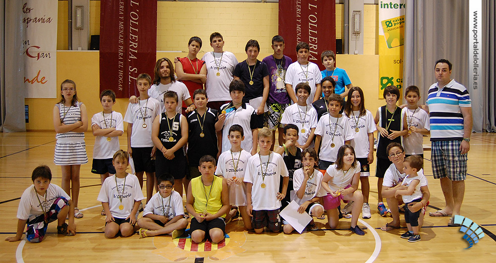 Este pasado sábado 29 de junio en el pabellón deportivo de la Solana se realizó la fiesta de fin de curso de la Escuela Deportiva de Baloncesto de L’Olleria, una jornada que resultó muy divertida y con un claro carácter festivo y familiar. En esta jornada festiva se realizaron una serie de partidos entre los niños y los padres y madres de los alumnos, y para finalizar se pasó a dar a todos los alumnos un boletín de evaluación de toda la temporada y un detalle a cada uno de los alumnos, que fue entregado por Vicente Oviedo, concejal de Deportes del Ayuntamiento de L’Olleria. También se realizaron todos los alumnos una foto final de grupo y en el mismo pabellón se realizó un almuerzo en el que participaron todos los alumnos.