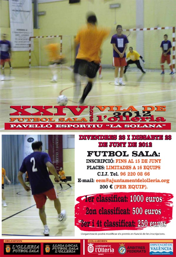 : Inicio » Deportes, Portada » Se abre el plazo de inscripción para las 24 horas Fútbol Sala Villa de L’Olleria 2012