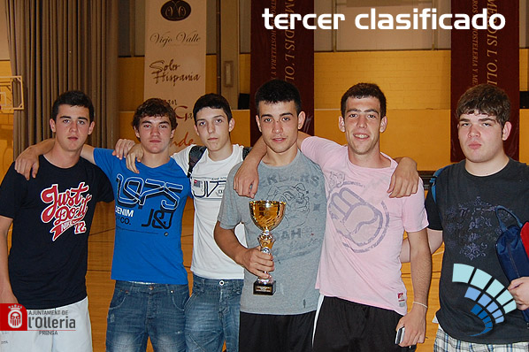 Este fin de semana se disputaron las 12 horas de futbol sala de categoria juvenil en L’Olleria. Una 12 horas muy disputadas y en las que se puedieron vivir unas seminiales muy igualadas y una final que se decidió en los últimos minutos. Al final los ganadores fueron Garrafone f.c que se impuso al subcampeón Mesié, Laki i la tia Paki por 3 a 1, el tercer clasificado fue The New Generation que cayó en penaltis ante el subcampeón, al final 3-2.
