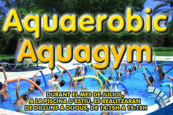 Durante el mes de Julio y al igual que en los últimos años, se llevarán a cabo, las sesiones de aquaerobic y aquagym, en la piscina de verano. El horario de las sesiones será de 14:15 h a 15:15 h de Lunes a Jueves. El precio de esta actividad es de 30€. Las incripciones se pueden realizar en el Centro de Información Juvenil. Los cursos están organizados por el Club Deportivo Fernando.